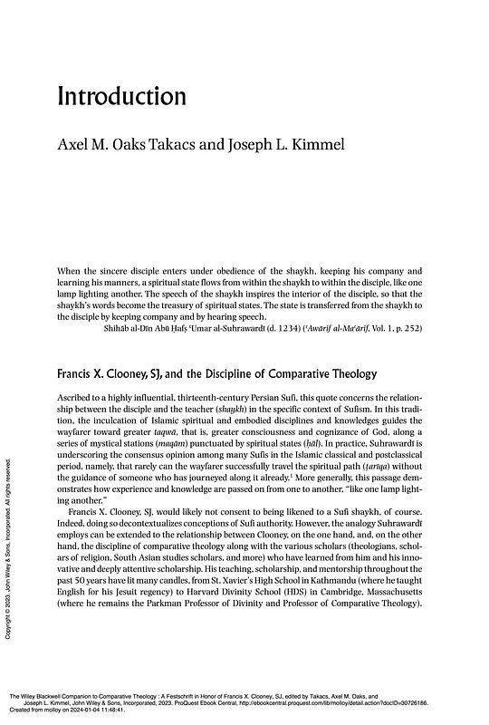 Axel M. Oaks Takacs, Joseph L. Kimmel, The Wiley Blackwell Companion to Comparative Theology: A Festschrift in Honor of Francis X. Clooney, SJ, Wiley Blackwell, 2023, pp. xvii-xxviii
