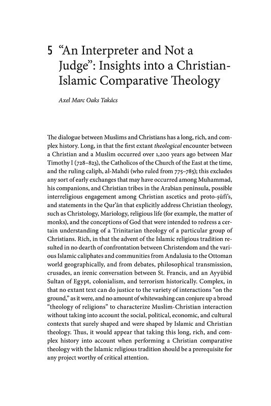 Takacs, Axel. An Interpreter and Not a Judge: Insights into Christian-Islamic Comparative Theology. Edited by SJ Francis X. Clooney and Klaus von Stosch, Fordham University Press, 2018, pp. 98–121.