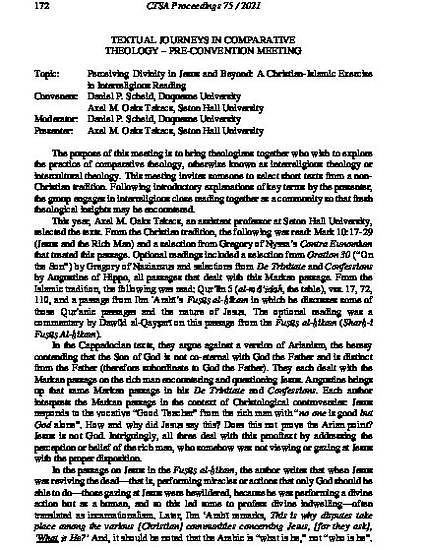 Takacs, A. M. O. (2021). Conference Proceeding: Textual Journeys in Comparative Theology - Pre-Convention Meeting. CTSA Proceedings (Vol. 75).